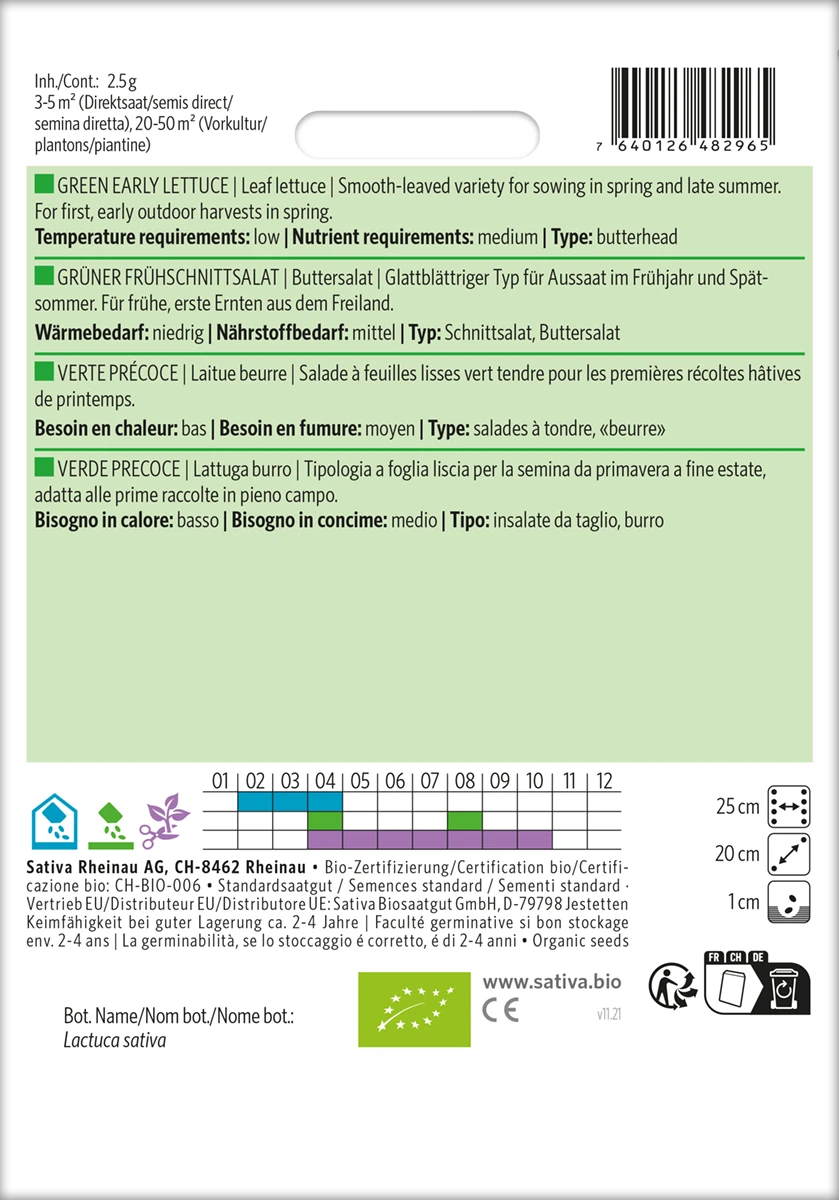 Glattblättriger Typ für Aussaat im Frühjahr und Spätsommer. Für frühe, erste Ernten aus dem Freiland.