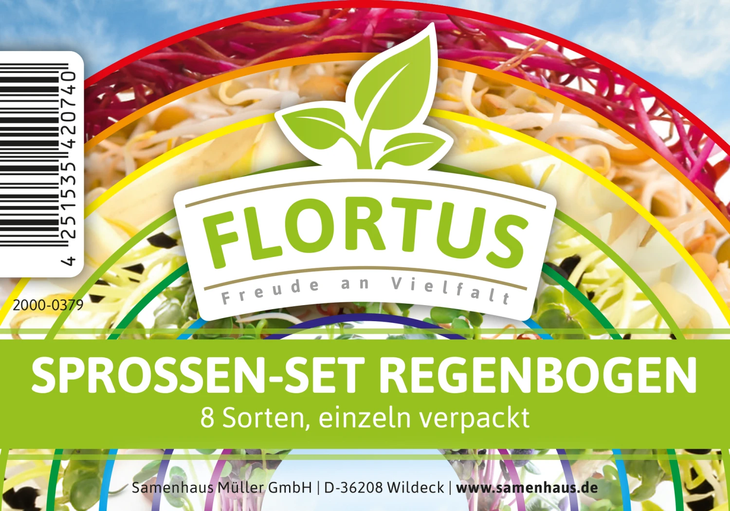 Nicht nur viele gesunde Inhaltsstoffe, sondern auch eine bunte Farbenpracht bringt das Sprossenset Regenbogen von FLORTUS mit. Sprossen waren noch nie schöner. Das macht die Keimsprossen ideal für Deko, aber auch für viele leckere Gerichte. In den Farben des Regenbogens kommen die Sprossen besonders gut zur Geltung. Das Regenbogen-Sprossenset ist ideal für Anfänger, da das Set 8 verschiedene Sorten enthält, mit denen sich Beginners ausprobieren können. Rote Rüben. Linsen, Zwiebeln, Senf und all die anderen Sorten sind auch geschmacklich sehr interessant und immer eine Aussaat wert.