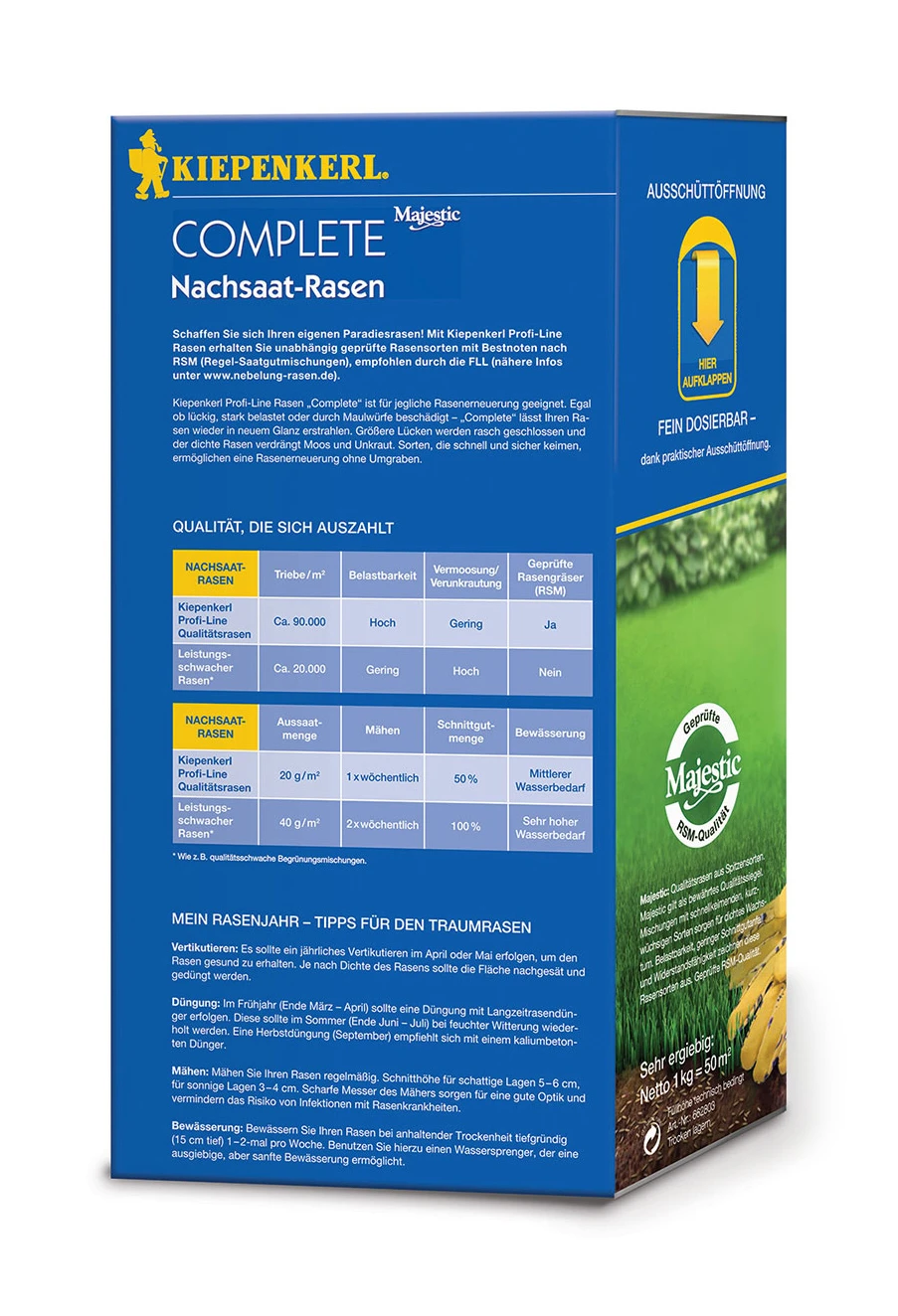 NachsaatRasen.Ideal für RasenNachsaaten. Rasenerneuerung ohne Umgraben.Keimstark und vital. Geringe Aufwandmenge: nur ca. 20 g/m². Reicht für ca. 50 m².