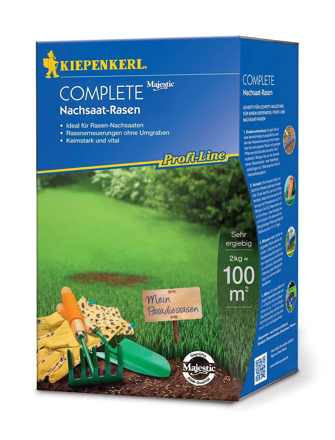 NachsaatRasen. Ideal für RasenNachsaaten.Rasenerneuerung ohne Umgraben. Keimstark und vital.Geringe Aufwandmenge: nur 20 g/m². Reicht für ca. 100 m².