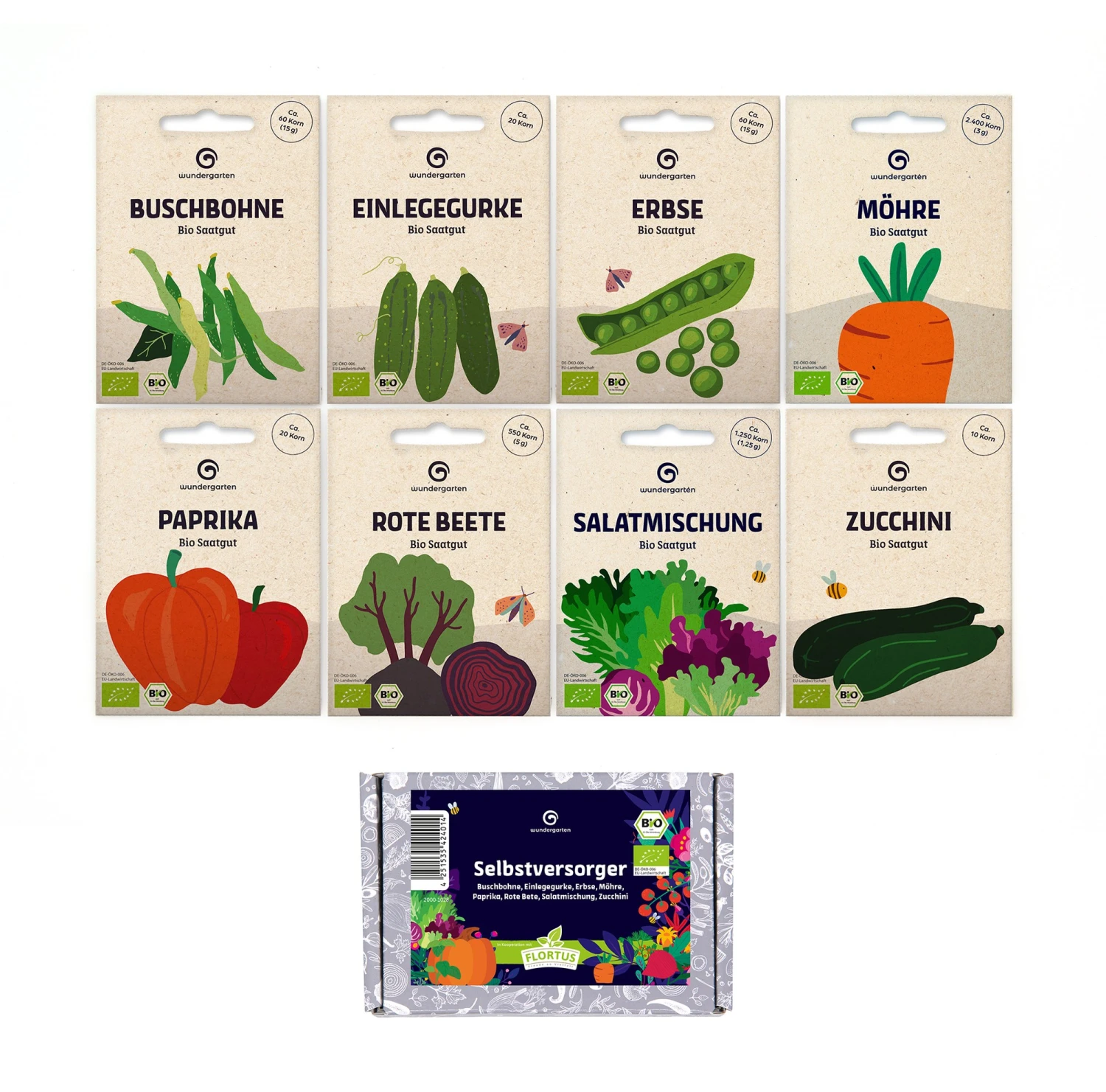 Selbstversorgung ist kein Modetrend. Das Gemüse aus dem eignen Garten schmeckt einfach besser und ist viel knackiger und frischer. Das Selbstversorger Set bringt ein buntes Potpourri von Gemüsesorten, die Grundlage der Selbstversorgung sind. Buschbohnen und Erbsen, Gurken, Paprika und Zucchini und viele andere Sorten sorgen über die gesamte Saison und darüber hinaus für frisches Gemüse aus dem Garten. Insgesamt sind im Set acht Gemüsesorten enthalten. Viele Gemüsesorten können Sie auch für den Winter konservieren.