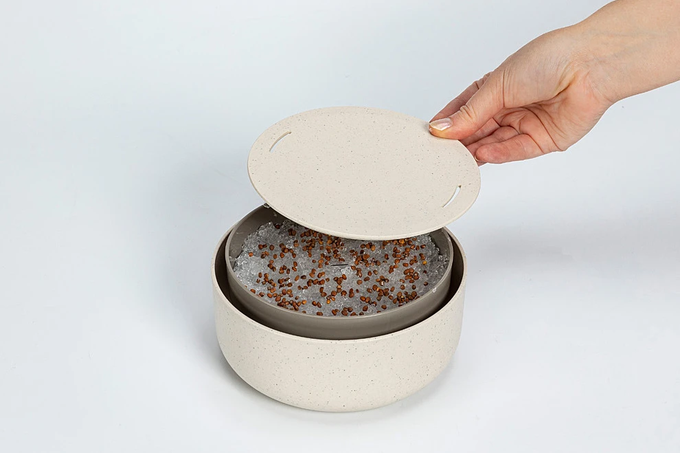 Microgreens sind kleine Pflanzen, die große Mengen an Vitaminen, Mineralien und Antioxidantien enthalten. Insbesondere die Vitamine C, D, E. Sie können das ganze Jahr unter heimischen Bedingungen angebaut werden. Probieren Sie den frischen Geschmack von Rucola, Rettich. Wir empfehlen die Kombination mit anderen Produkten: Regrow, Avocado/Zwiebel-Schale. Das Produkt wird in zwei Varianten hergestellt: aus dem Originalmaterial und aus dem Originalmaterial mit Kaffeesatz. Was bedeutet, dass das Produkt mit einer Beimischung von Kaffeesatz hergestellt wurde? Die endgültige Form des Produkts entstand durch Vermischung des ursprünglichen Materials mit einer Beimischung von Kaffeesatz (10 %), der die optische Körnung und die feine Verfärbung verursacht.