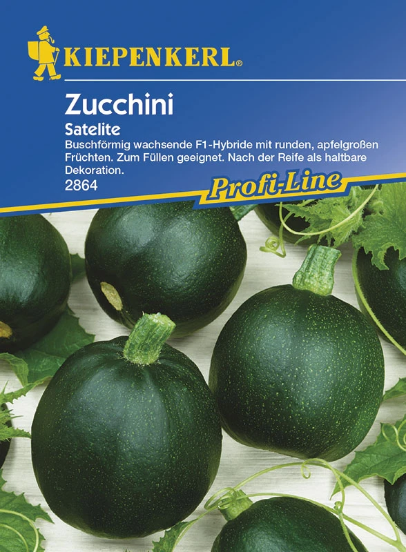 Buschförmig wachsender Zucchini mit ballförmigen, appetitlich mittelgrünen Früchten. Besonders schmackhaft sind die zarten, jungen Früchte, die an den nicht rankenden Pflanzen wochenlang in großer Zahl erscheinen. Eine knusprige Delikatesse sind auch die großen, gelben Blüten in Omelette-Teig getaucht und frittiert.
