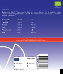 Reichtragende Sorte mit kleinen Schoten für die asiatische Küche. Sollten in keinem Wokgericht fehlen. Auch roh sehr geschmackvoll, Anspruchslos, für alle Böden geeignet. Samenfest.